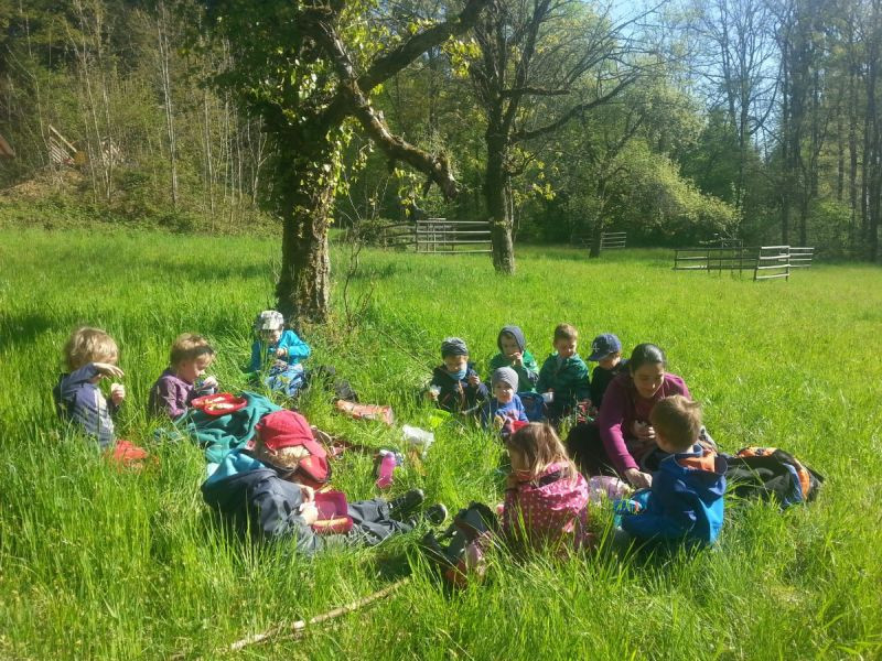 Vielfältige Begegnungen mit der Natur und ihren Wesen und Elementen finden statt und schaffen Vertrauen und Nähe- das Kind fühlt sich in Wald und Wiese zu Hause.
